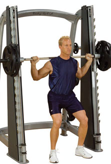 Esta no es la manera de hacer pesas. La idea de hacer pesas es que cada individuo debe mover su cuerpo y peso de una manera que refleje las condiciones individuales para cada ejercicio. Para sentadillas, las condiciones pueden ser la longitud de la pierna, torso, la posición de la barra en la parte posterior, tipo de barra, centro de gravedad, distancia entre los pies, posición de tus hombros, etcétera. En la smith machine estos factores son irrelevantes ya que la máquina realiza toda la estabilización al que la está usando y la trayectoria de movimiento es fija.